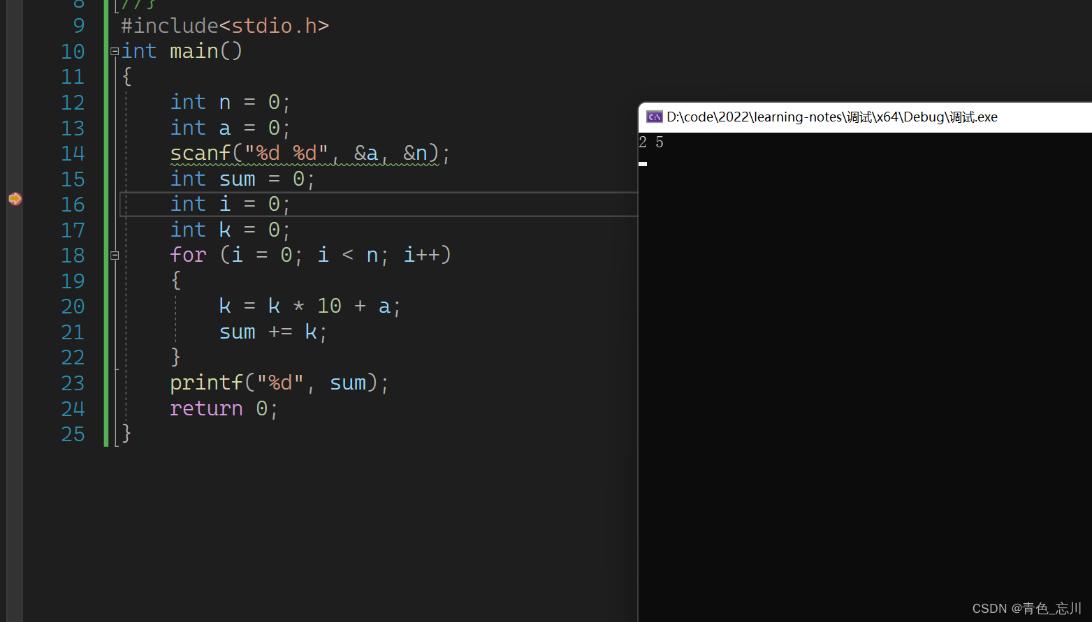 此时他就进入到函数内部了,然后继续F11,就可以一直走完这个函数,并且最终跳出这个函数,回到原来的位置中