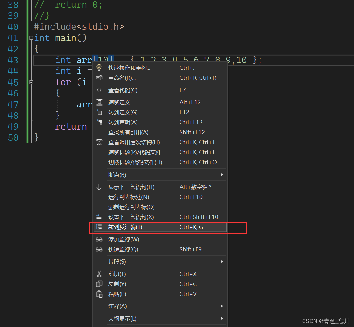 {int arr[10] = { 1,2,3,4,5,6,7,8,9,10 };int i = 0;for (i = 0; i < 10; i++){arr[i] = 0;}return 0;
