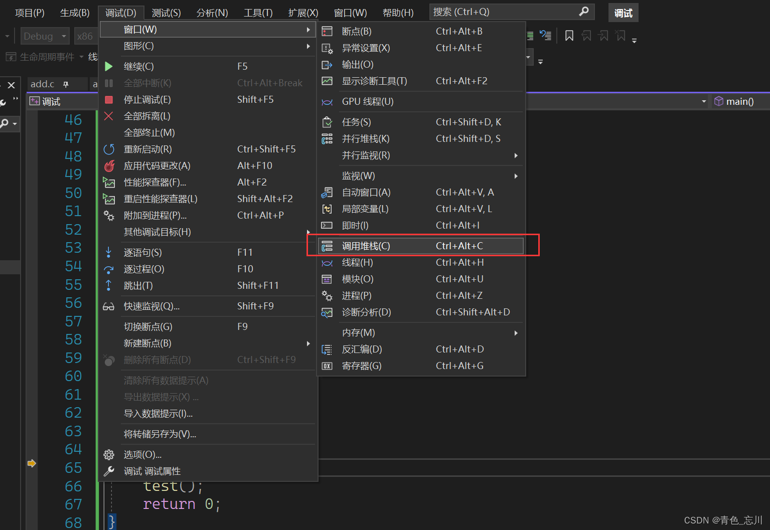 我们进入调试,选中调用堆栈