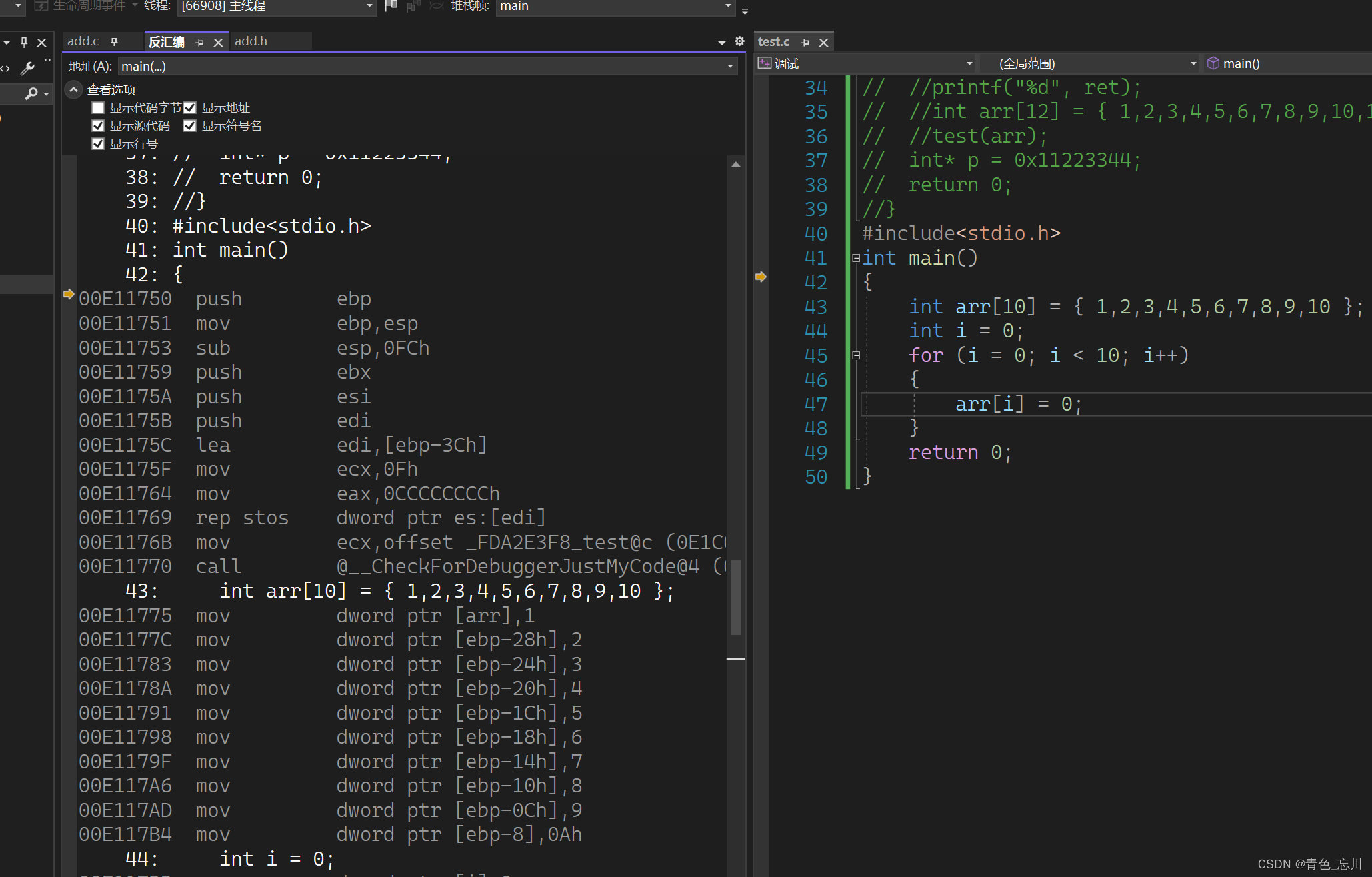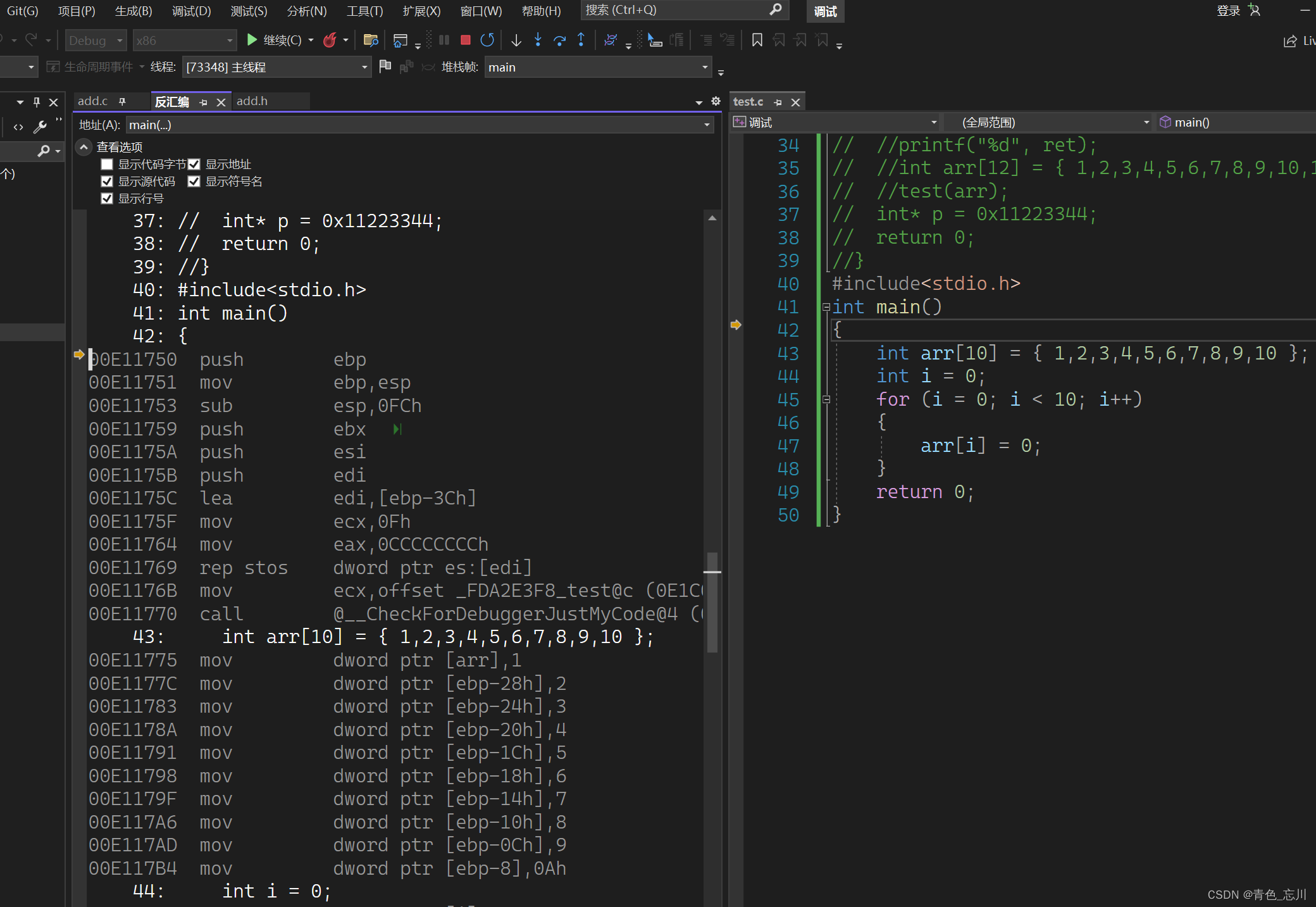 这样显示出来的就是这段代码翻译成汇编代码的样子