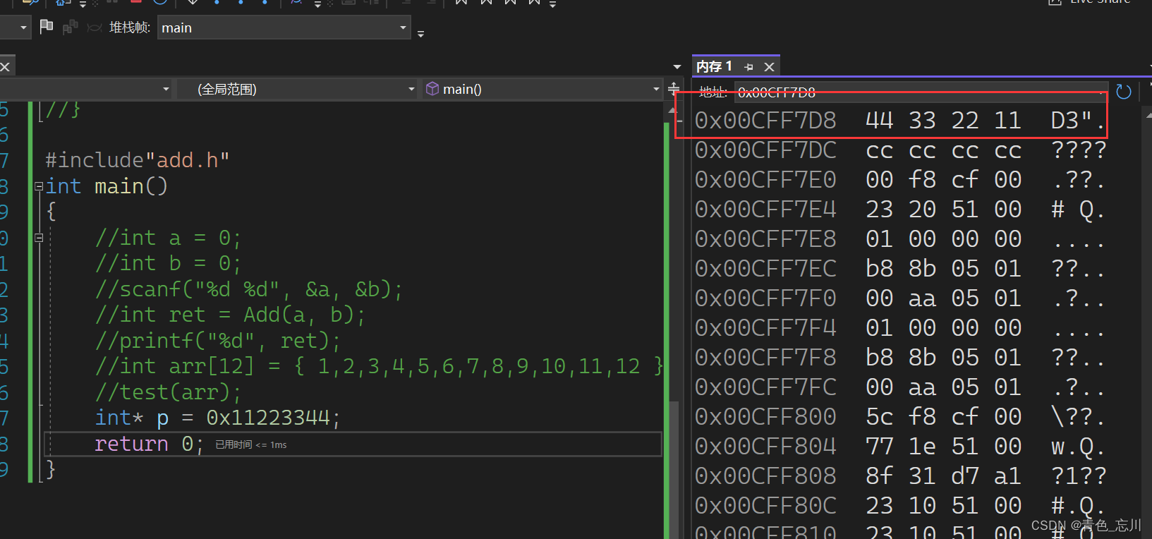 当程序结束时候,main函数的堆栈也就被销毁了。