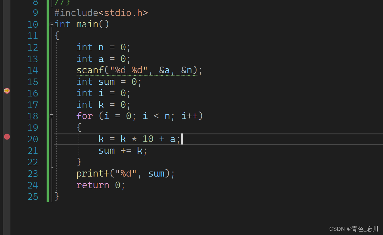 {int n = 0;int a = 0;scanf("%d %d", &a, &n);int sum = 0;int i = 0;int k = 0;for (i = 0; i < n; i++){k = k * 10 + a;sum += k;}printf("%d", sum);return 0;
