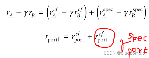 以APT的术语来说,两个时间序列协整的话,那么它们的因子暴露系数矩阵的相关系数是+1或者-1。在实际应用中,这是很难达到的条件。如果它们的因子暴露系数矩阵(向量)没有完美的重合,那么由两个股票构成的长短投资组合就会有非零的共同因子回报。然而,协整需要共同因子回报是零值,破坏这个条件就不是完美的协整了。我们看看下面这个式子: