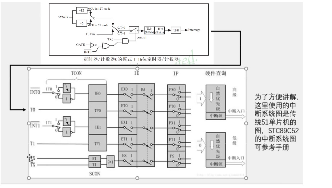 图上这些英文标识就是51单片机的寄存器或寄存器的位的名字,所以写程序的时候控制这些寄存器就可以完成电路的闭合和优先级等操作。