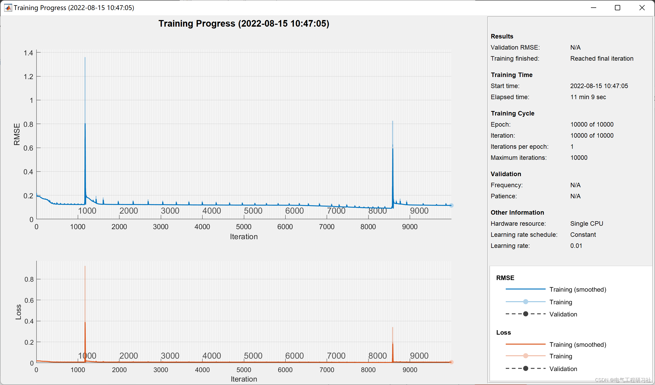 options = trainingOptions('adam', ...'MaxEpochs',maxEpochs, ...'InitialLearnRate',0.01, ...'GradientThreshold',1, ...'Shuffle','never', ...'Plots','training-progress',...'Verbose',0);