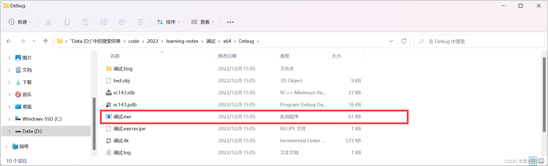 我们也可以点进去进行观察,这个就是调试版本的可执行程序,这里要注意一点,他的大小是61KB