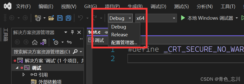 大家可能在visual studio上见到过这个东西,这里有一个Debug和一个Release,如下图所示