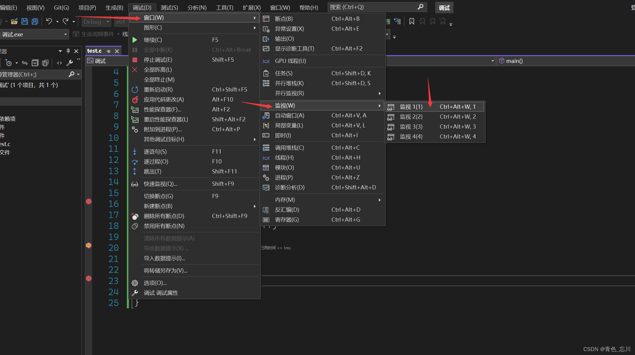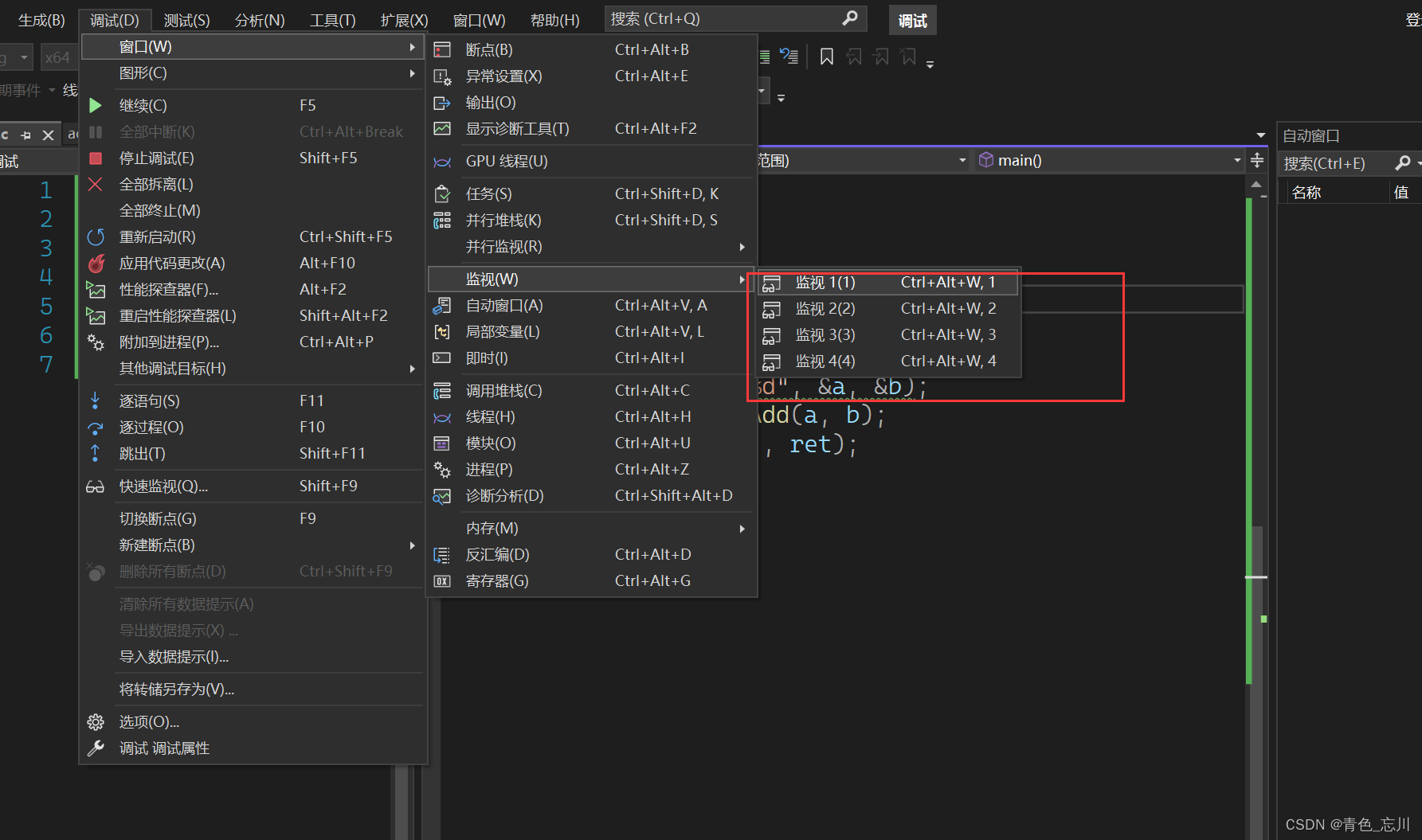 对于下图中这四个监视窗口而言,我们只需要任意打开其中一个即可