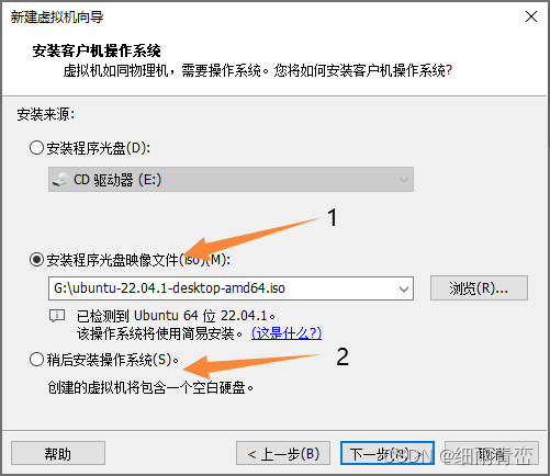 也可以直接 选在 2 处,后期添加一个虚拟光驱,添加系统镜像