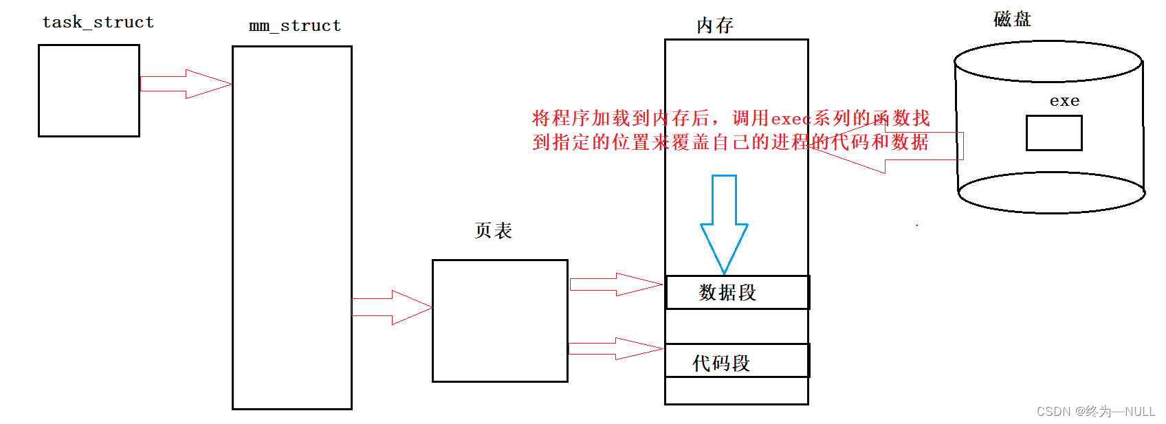 将指定的程序加载到内存,让指定的进程执行