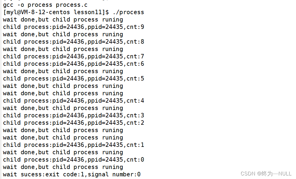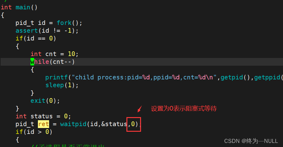 1.设置为0表示阻塞式等待,当子进程没有退出的时候,父进程一直在等待子进程,直到等待成功,释放子进程: