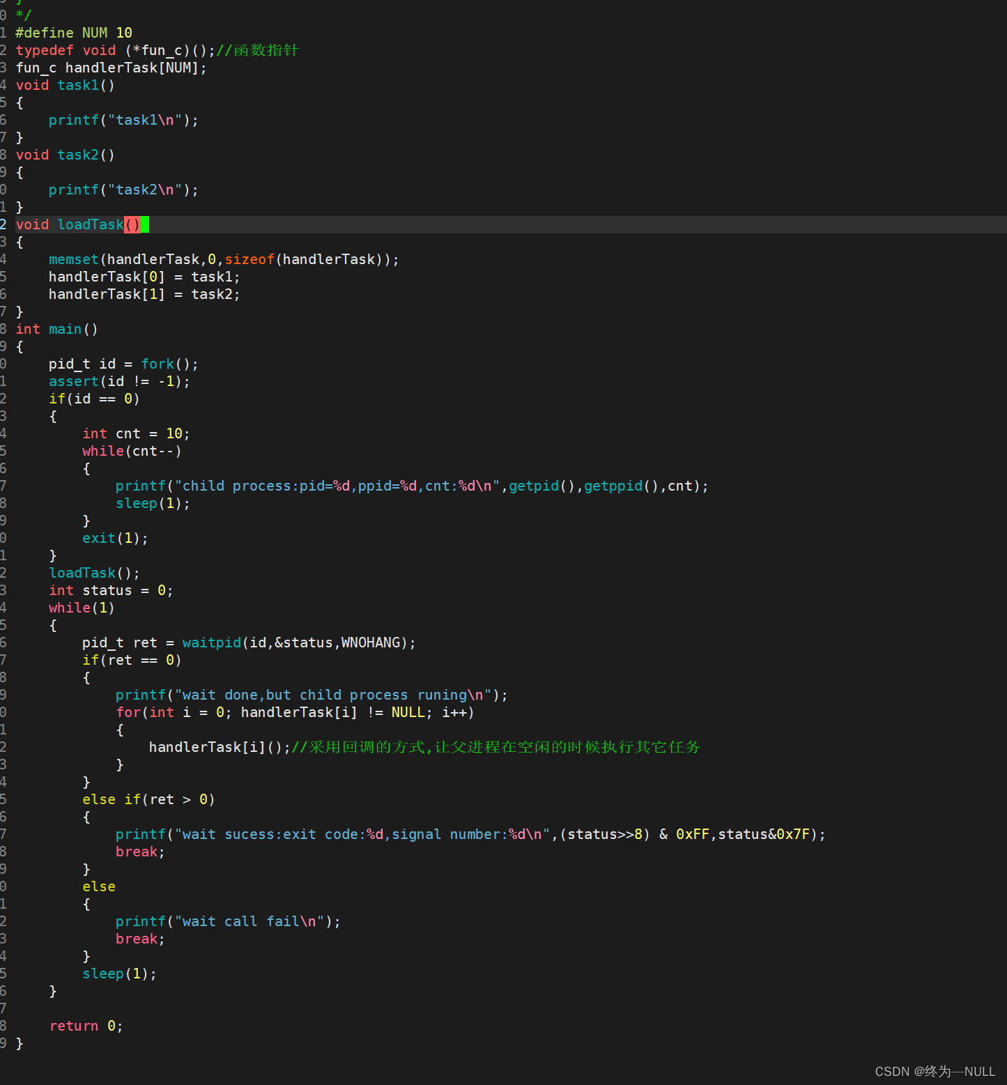 返回值:有两个返回值,给父进程返回子进程的pid,给子进程返回0,创建失败返回-1