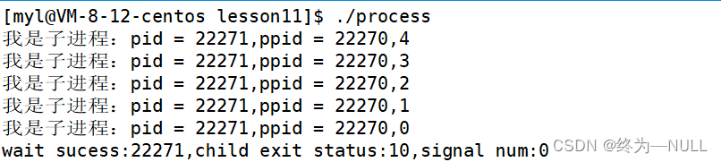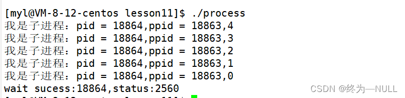 此时我们就成功获取到了进程退出时的状态信息和终止信号;