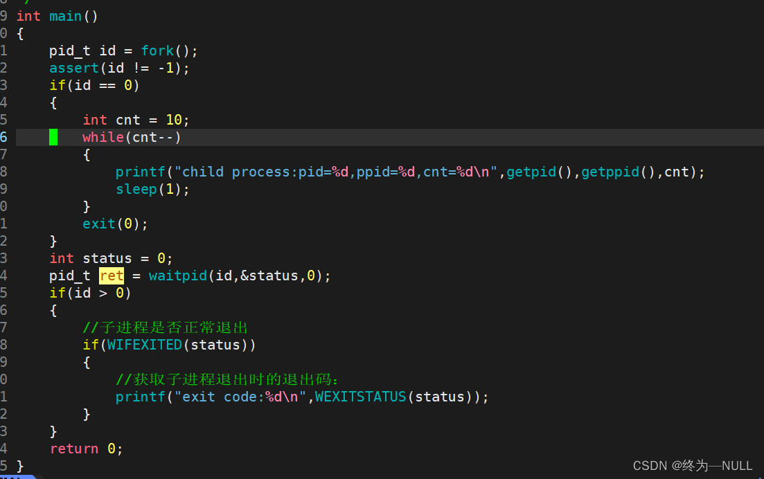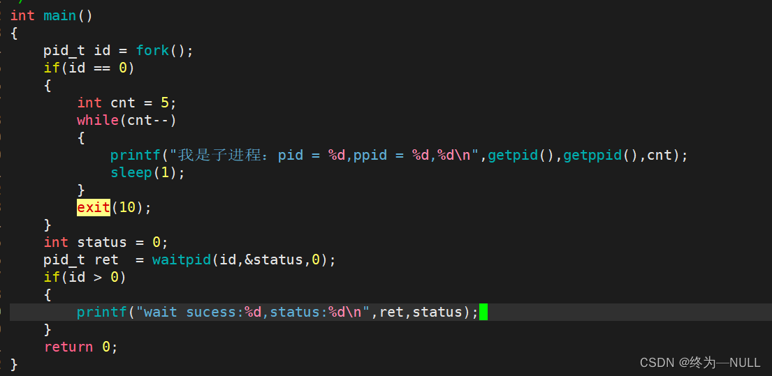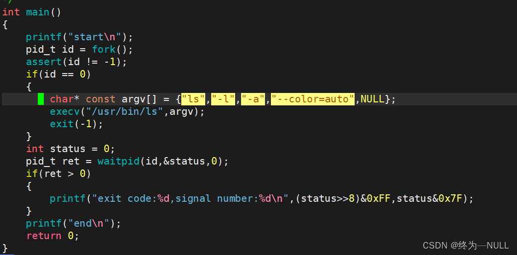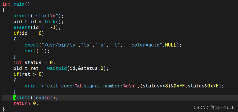 WIFEXITED(status): 若为正常终止子进程返回的状态,则为真。(查看进程是否是正常退出) WEXITSTATUS(status): 若WIFEXITED非零,提取子进程退出码。(查看进程的退出码)![]()