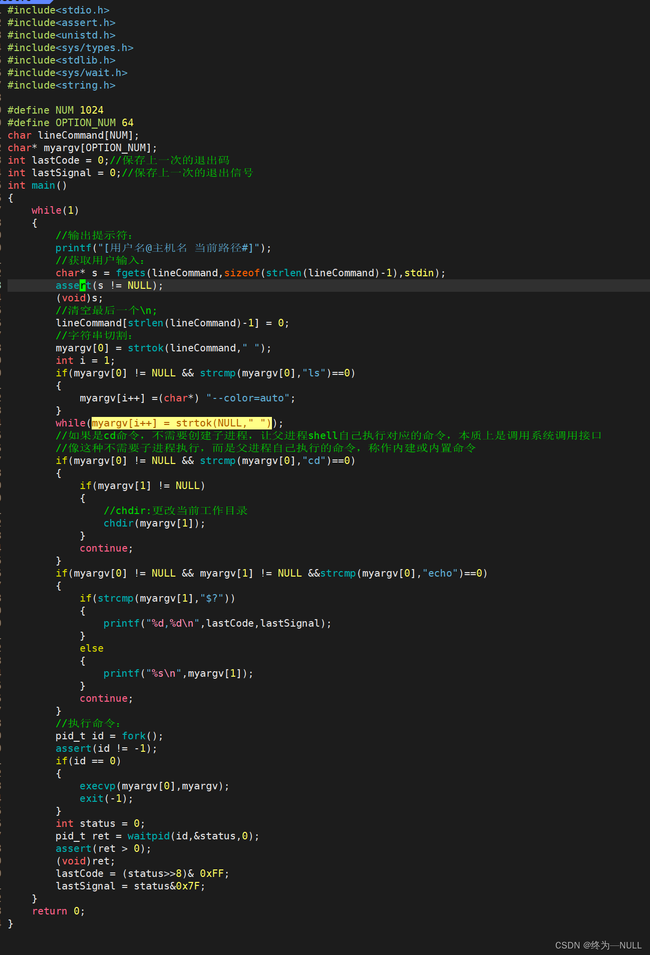 模拟实现一个简易的shell: