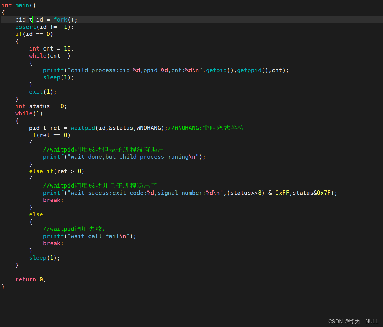 输出型参数,获取子进程退出状态,不关心可以设置为NULL
