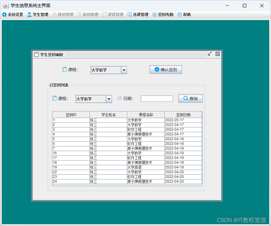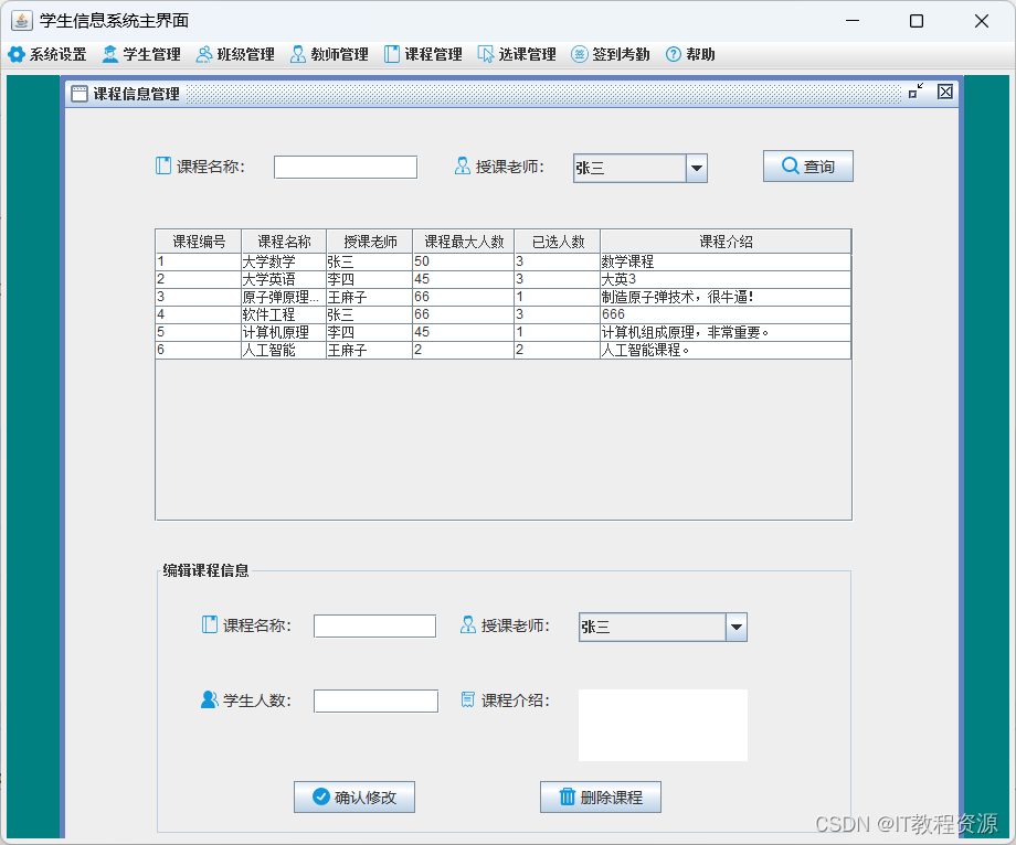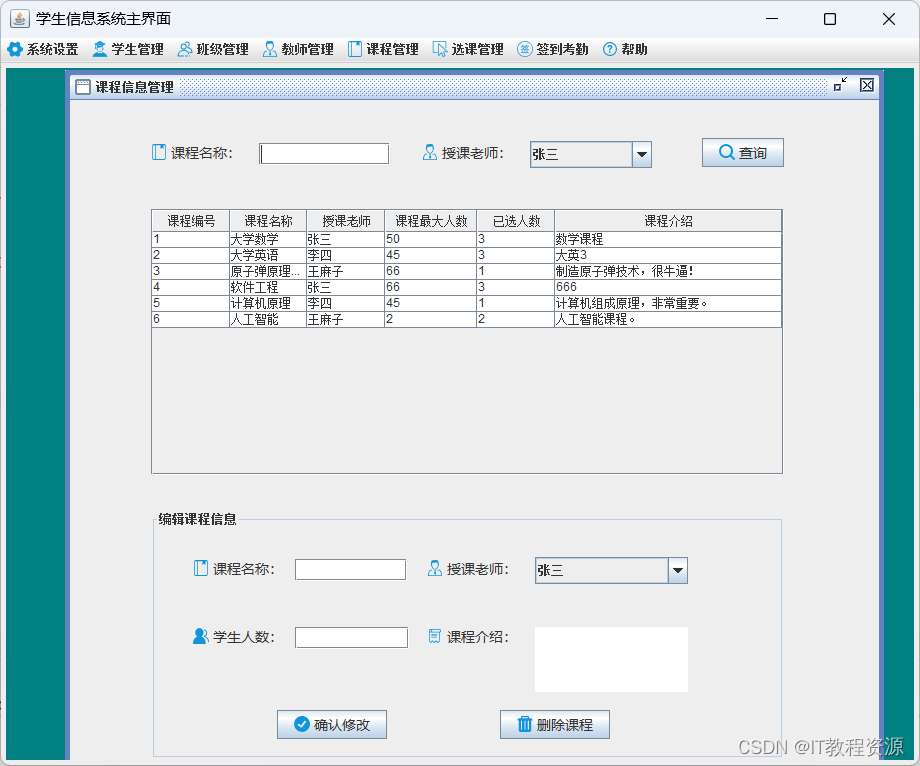 5.课程管理:添加、修改、删除、查询