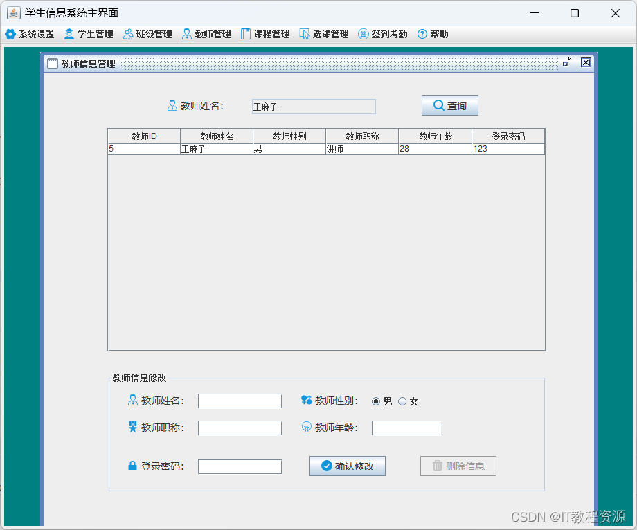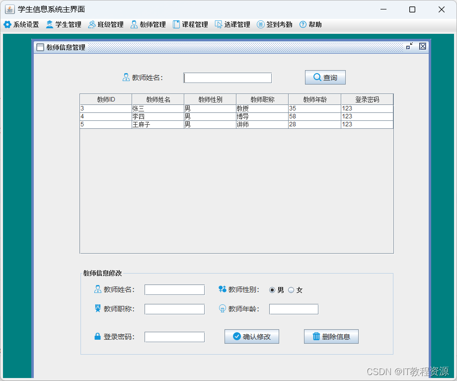 4.教师管理:添加、修改、删除、查询