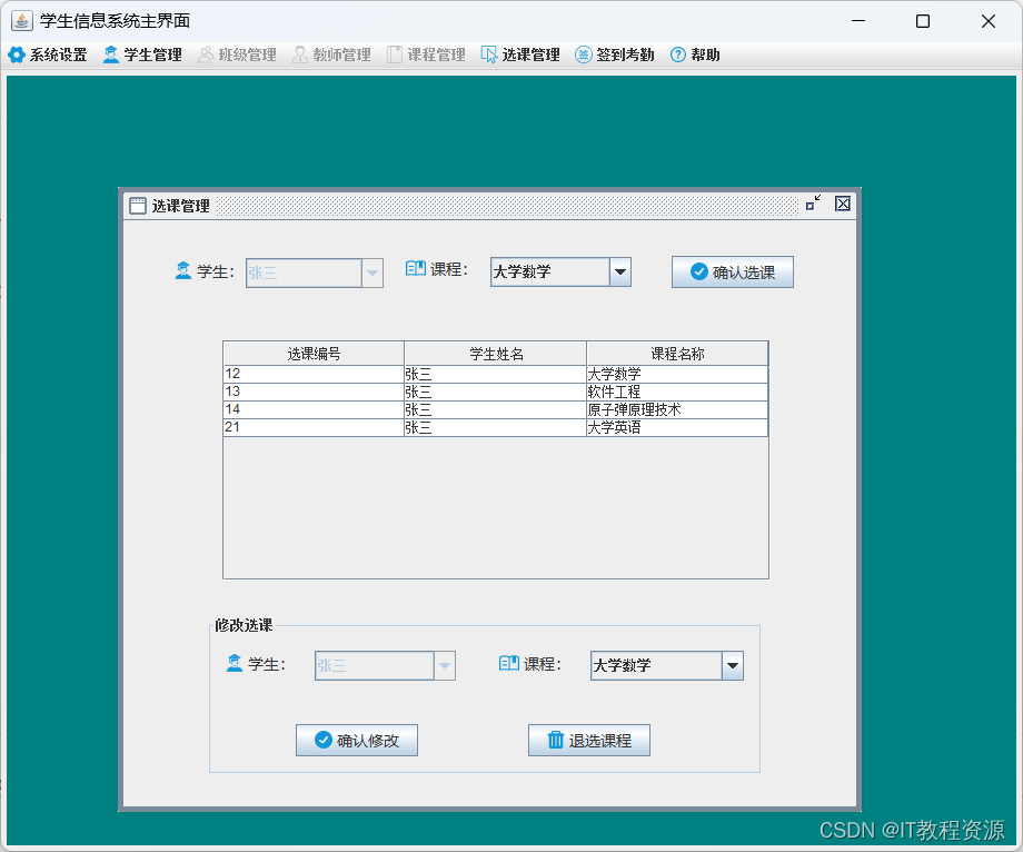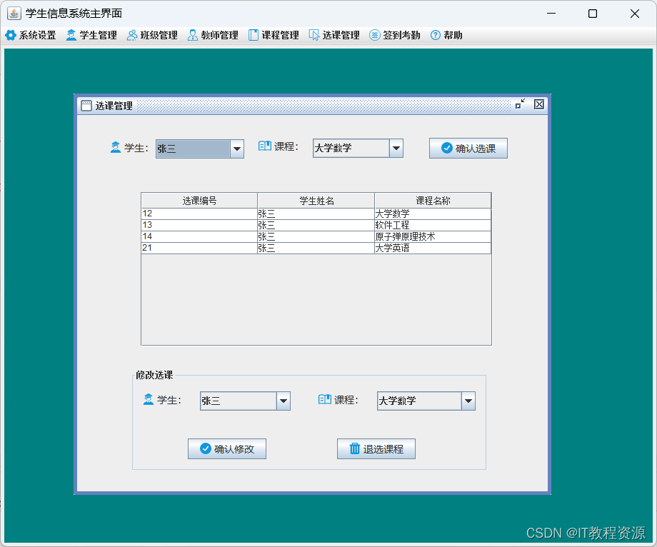 3.选课管理:修改选课、推选课程
