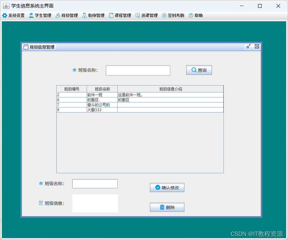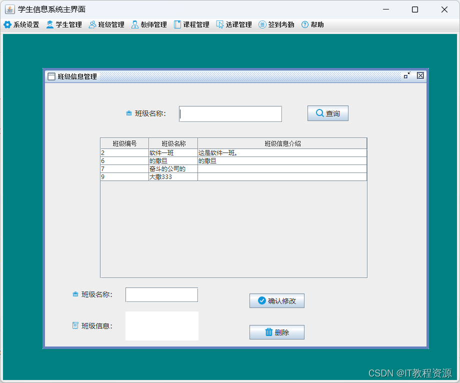 3.班级管理:添加、修改、删除、查询