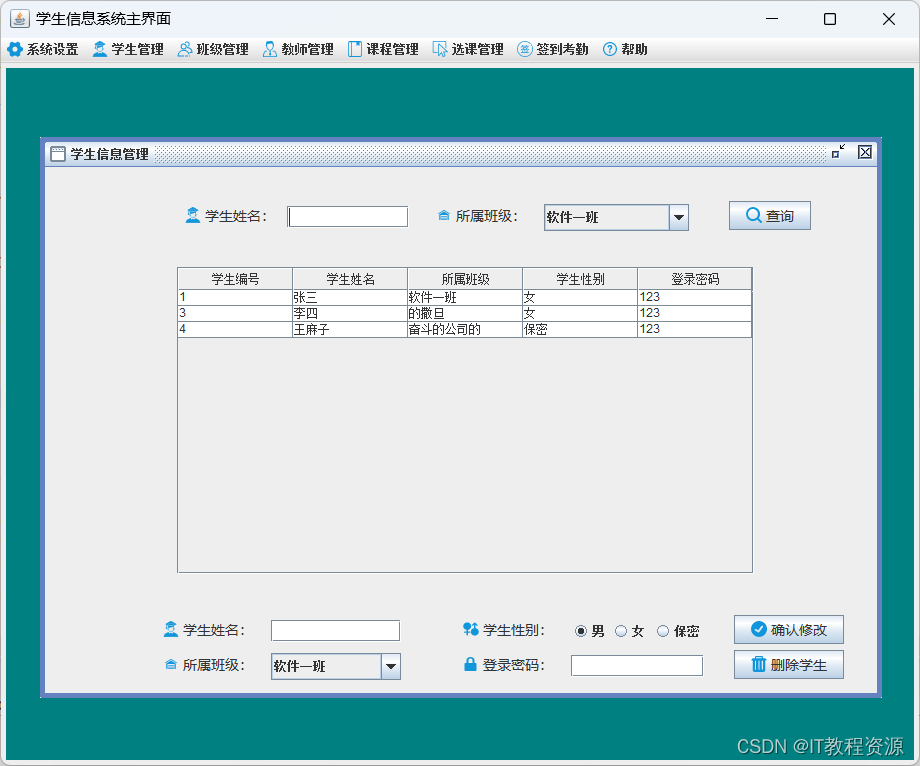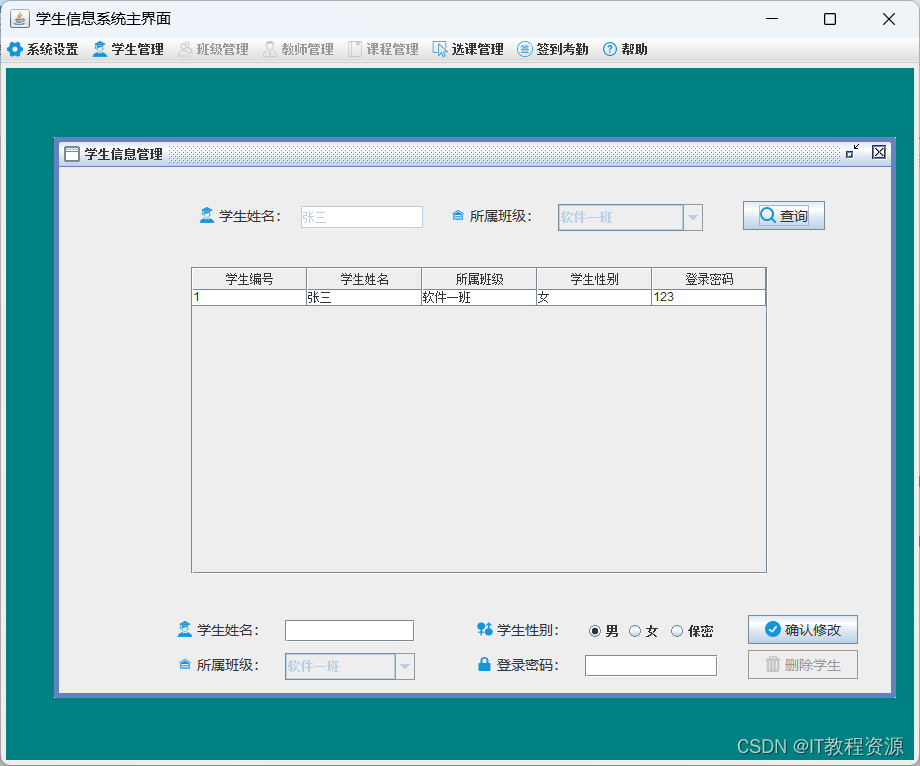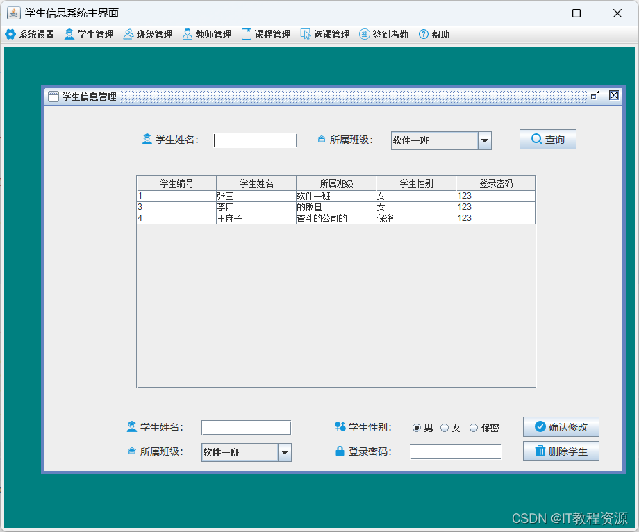 2.学生管理:添加、修改、删除、查询