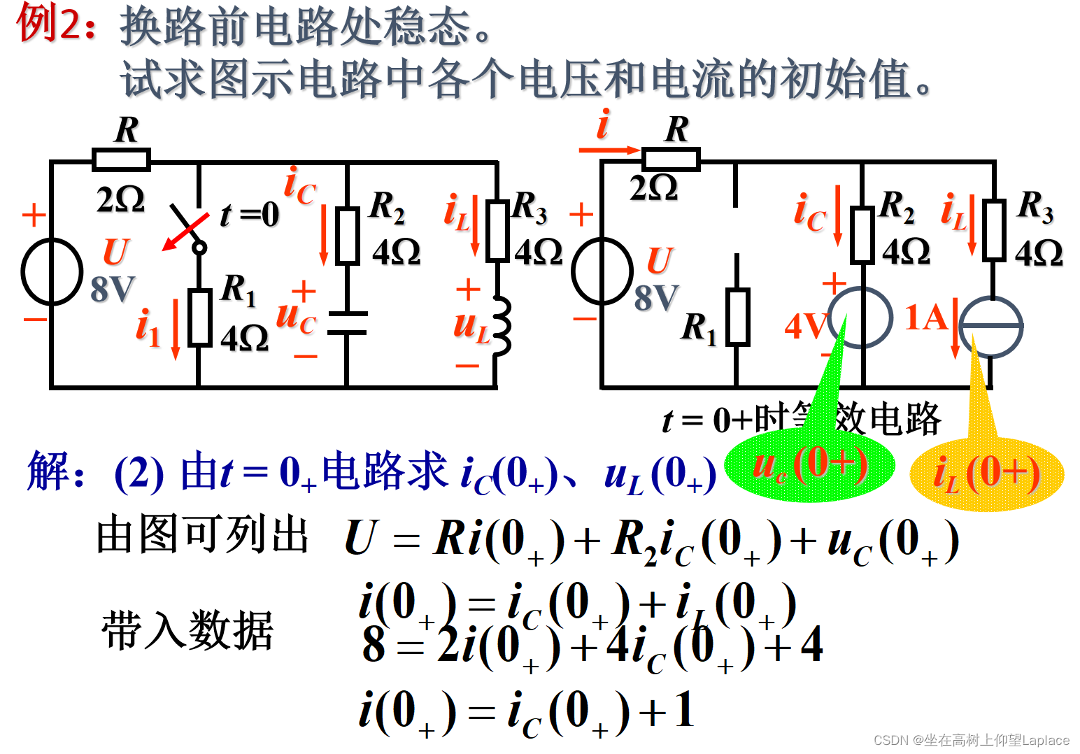 关于结论2,在0-的那一瞬间,因为没有储能,u_{C}=0,所以电容看作短路,i_{L}=0,所以电感看作开路。