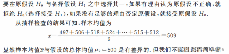 解:设这天包装机每袋装包量为X,若假设这天包装机的工作正常(即总体X的均值),于是检验包装机工作是否正常的问题就转化为:在已知总体