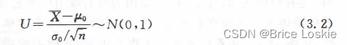 称为拒绝域,并称式(3.2)中定义的U 为检验统计量. 而称这种用U 做检验统计量的检验法称为U检验法.为方便,人们也常将拒绝条件(3. 5)称为拒绝域.