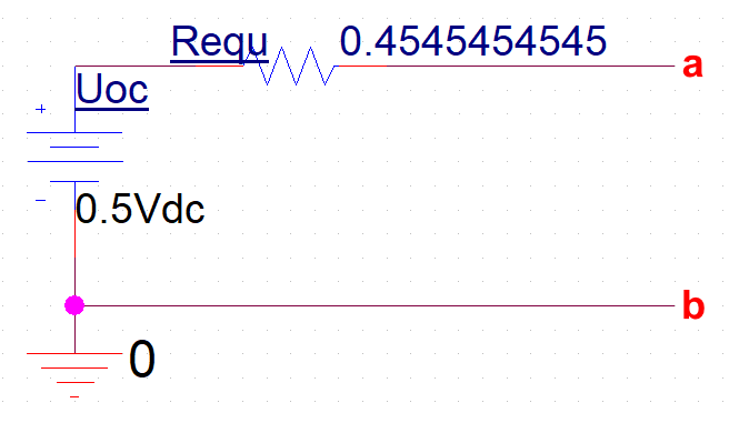 Step2.3、叠加定理计算Uoc = Uoc1 + Uoc2 = 4/11 + 3/22 = 0.5 V
