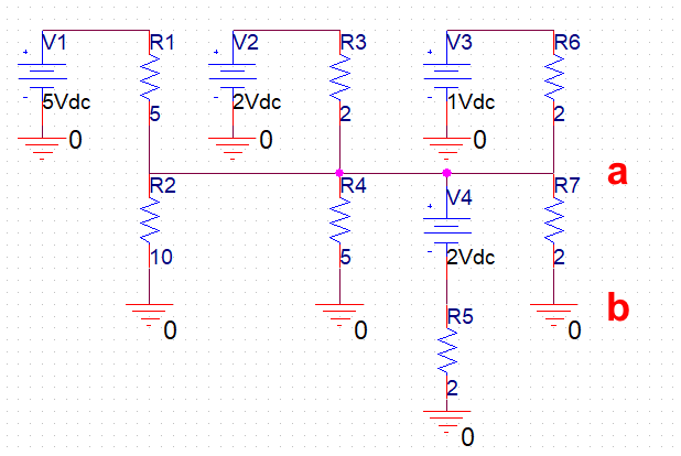 将所有其他电压源短路,电流源开路,电路如下,Uoc1 = 4/11 V