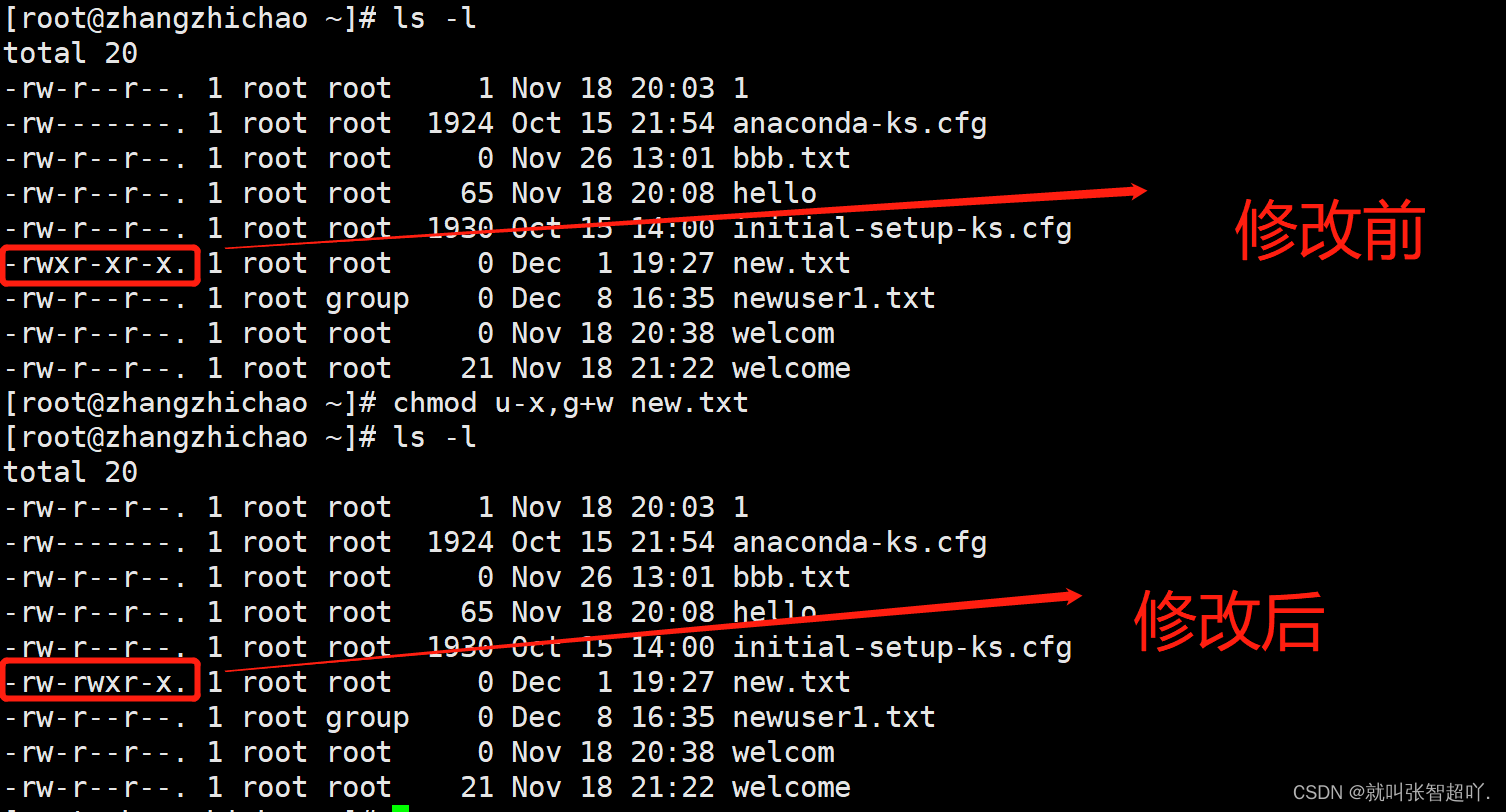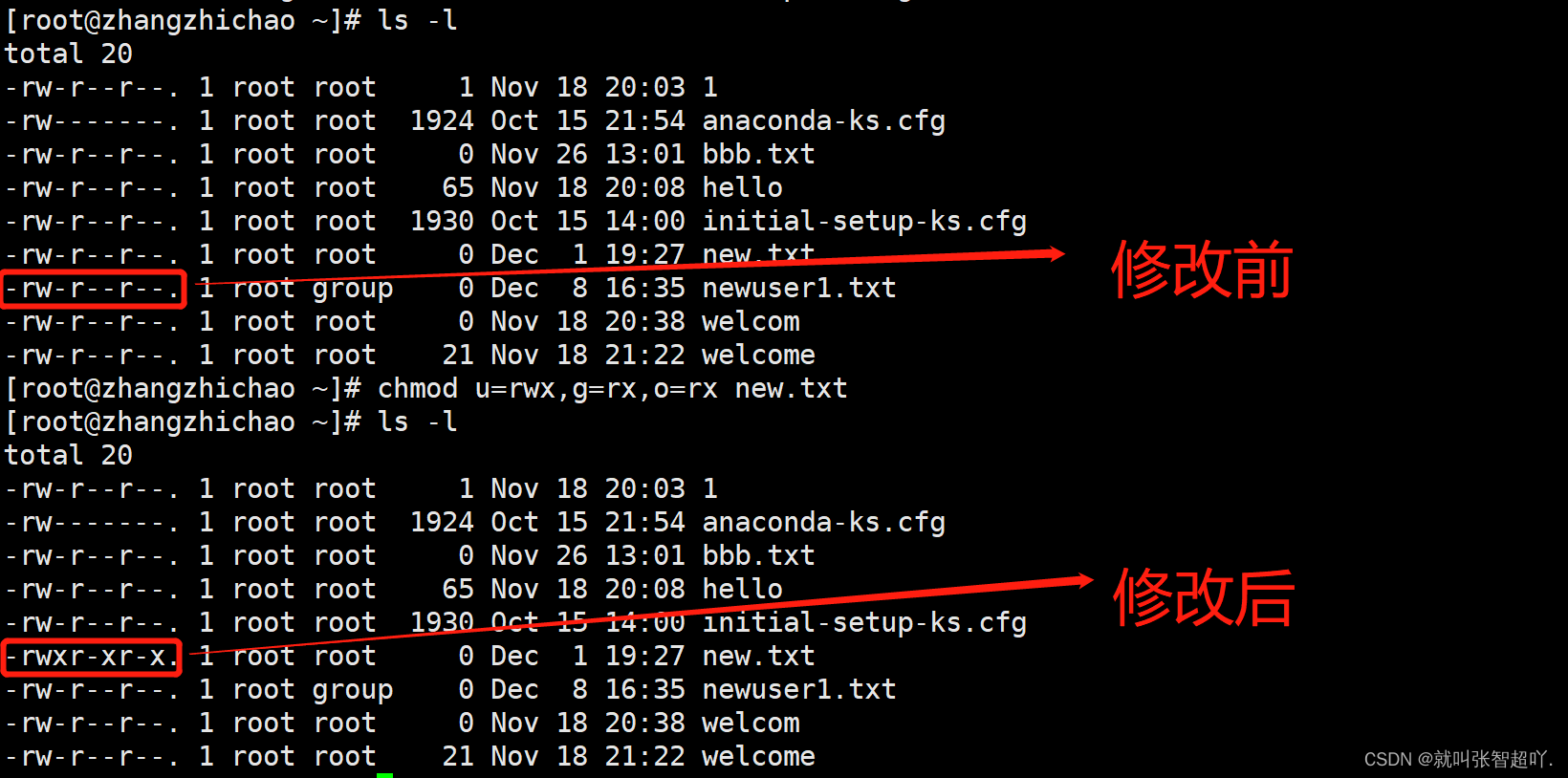 基本说明:通过chmod指令,可以修改文件或目录的权限