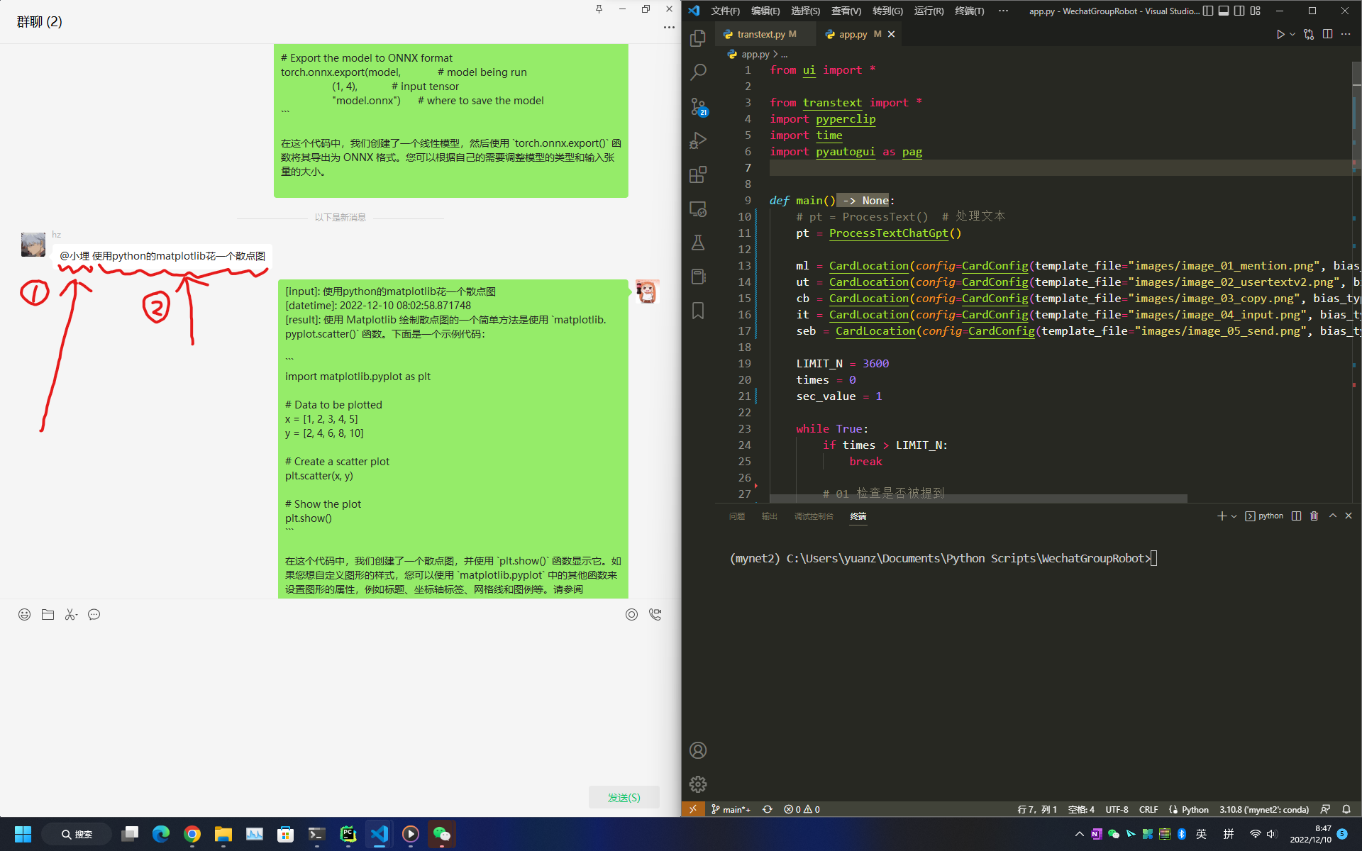 就是要把这个绿框截图给准确的截下来(当然你的机器人名称不叫小埋)