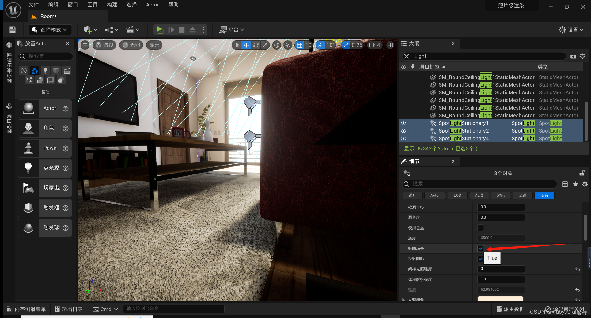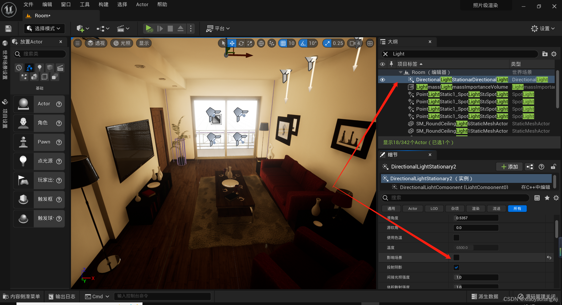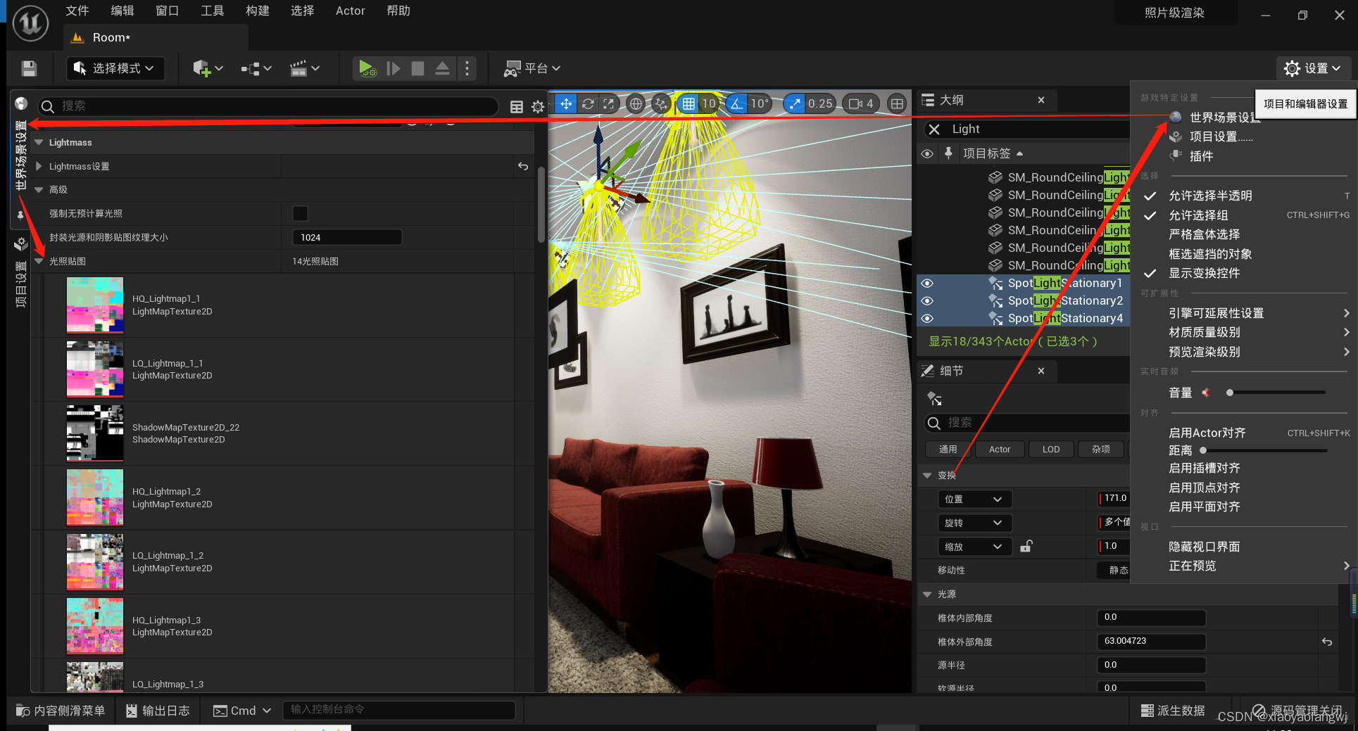 UE5笔记【五】操作细节——光源、光线参数配置、光照图修复