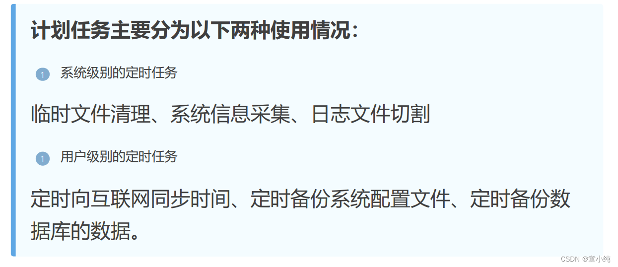 定时任务命令是cond,crond就是计划任务,类似于我们平时生活 中的闹钟,定点执行。