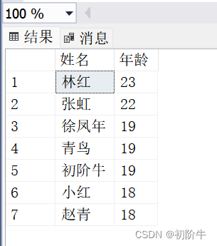 order by '年龄'desc--表示按降序排列