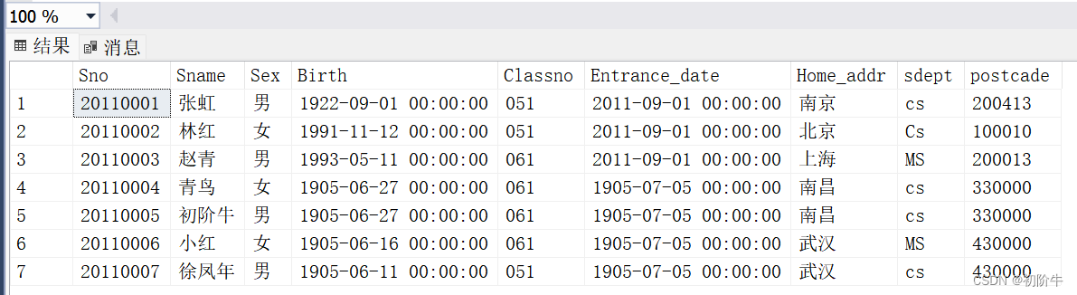 🌰查询学生表(student)的全体学生所有信息(相当于查询整张表)