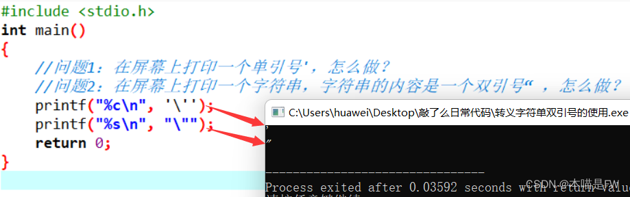 上例子,来体现转义字符的作用