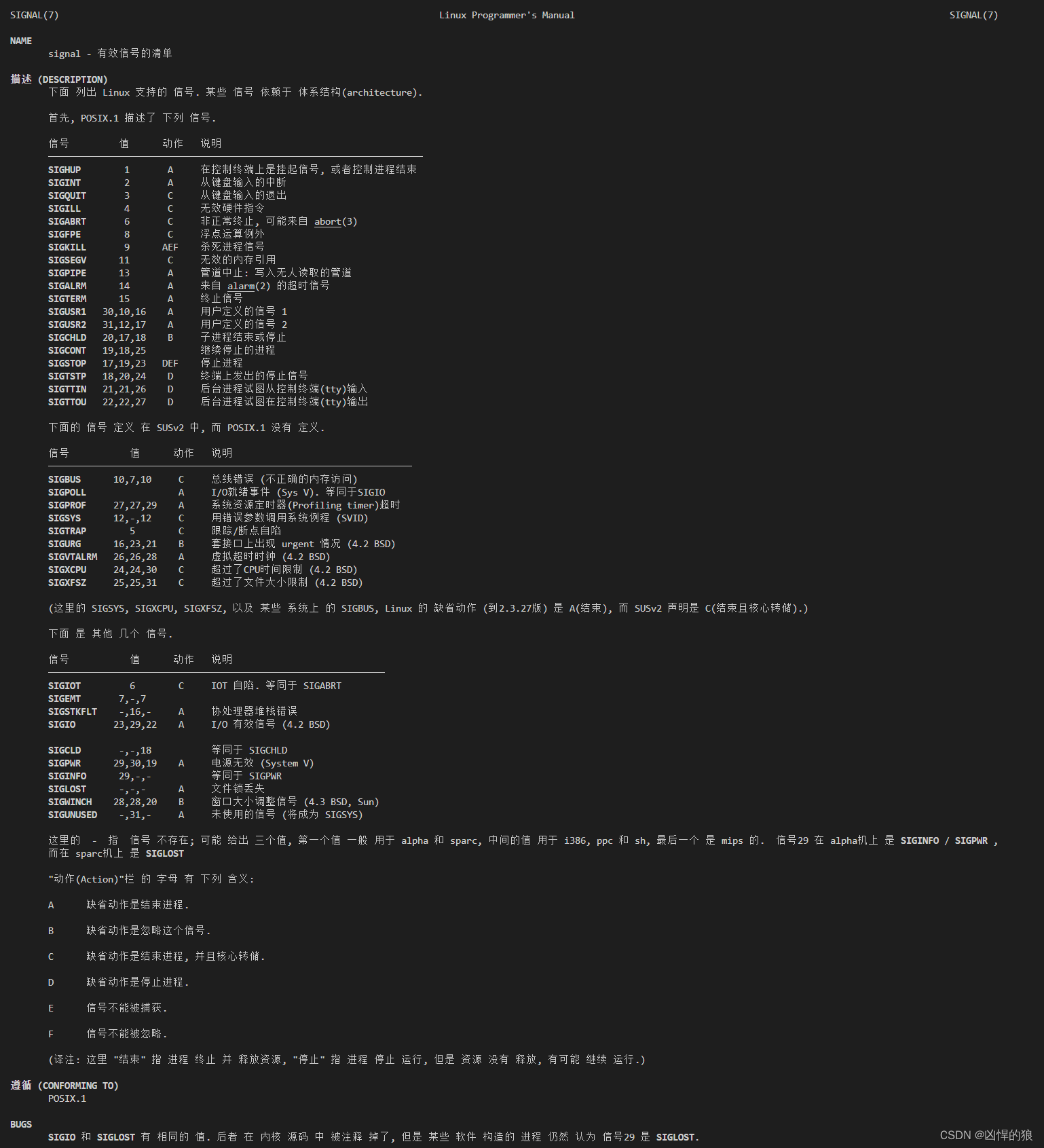 man 7 signal 查看信号详细内容
