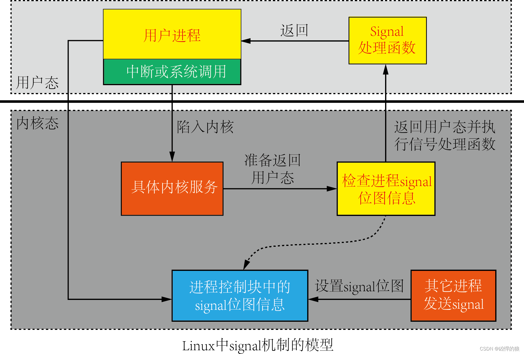 特别强调对 异步 和 中断 理解:因为信号是异步的,一个进程不必通过任何操作来等待信号的到达,事实上,进程也不知道信号到底什么时候到达。