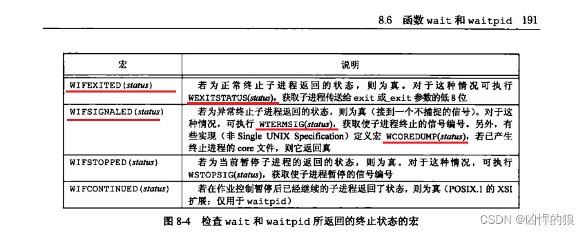 - 关于wait()和waitpid()所返回相关的宏