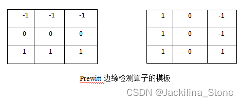 与Sobel算子的方法一样,图像中的每一个像素点都用这两个卷积核分别进行卷积运算,取这两个卷积的最大值作为该点的边缘输出值,运算结果是一幅边缘幅度的图像。为了在检测边缘的同时能减少噪声所带来的影响,算子从加大边缘检测算子的角度出发,由2×2扩大到3×3来计算差分算子,Prewitt边缘检测算子的两个卷积模板如下图所示。