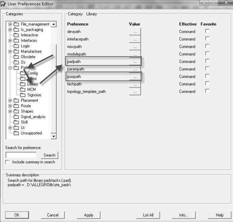 第三步,建立焊盘前,先把文件夹路径设置好,在“Set Up”→“User Preferences Editor”里设置,如图4-5所示。
