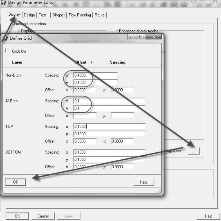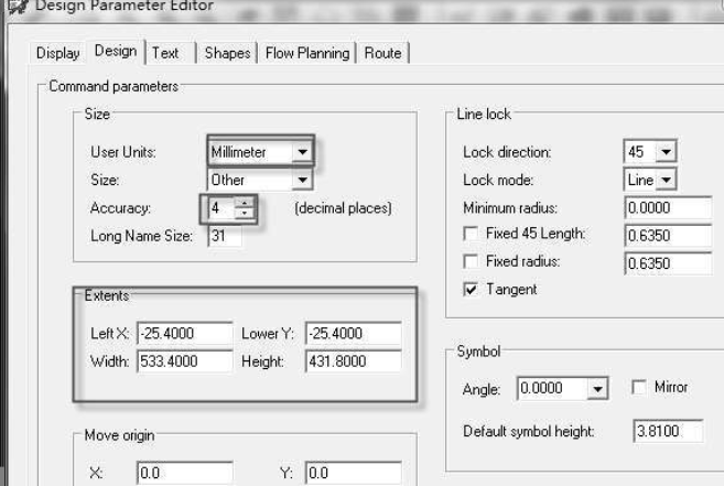 第五步,新建PCB封装后,先进行设计单位、精度及原点设置,如图4-7所示;然后进行设计格点的设置,如图4-8所示。