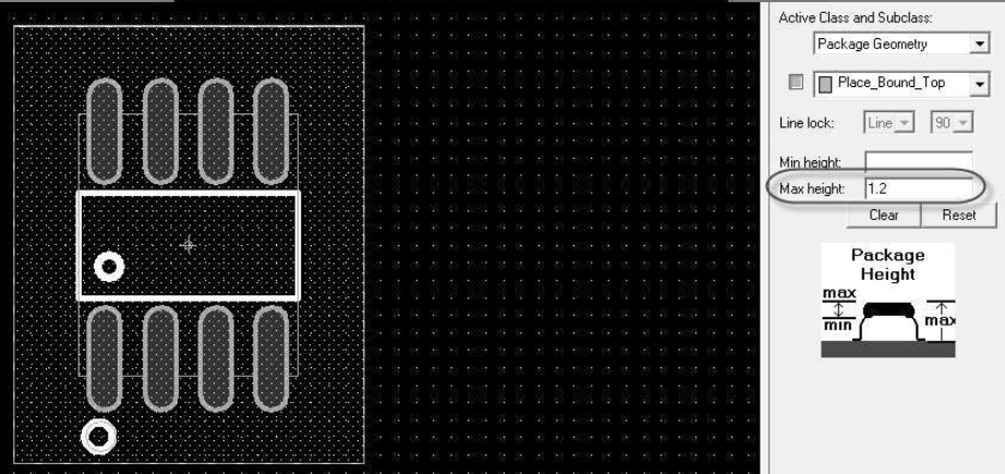 第九步,画好后,设置实体的范围和高度,先画Place_bound,设置好占地面积,如图4-12所示;再执行“Setup”→“Areas”→“Package Height”命令,在相应界面中添加最大高度,如图4-13所示。