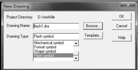 第一步,制作Flash焊盘。打开程序,执行“File”→“New”命令,在弹出的对话框中,“Drawing Name”一栏填写Flash的名称,“Drawing Type”中选择“Flash Symbol”,如图4-15所示。