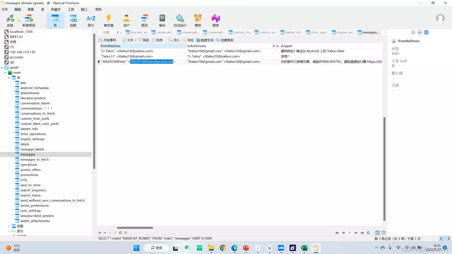 接上题图,查看fromAddress中的信息30624700Peter@proton.me