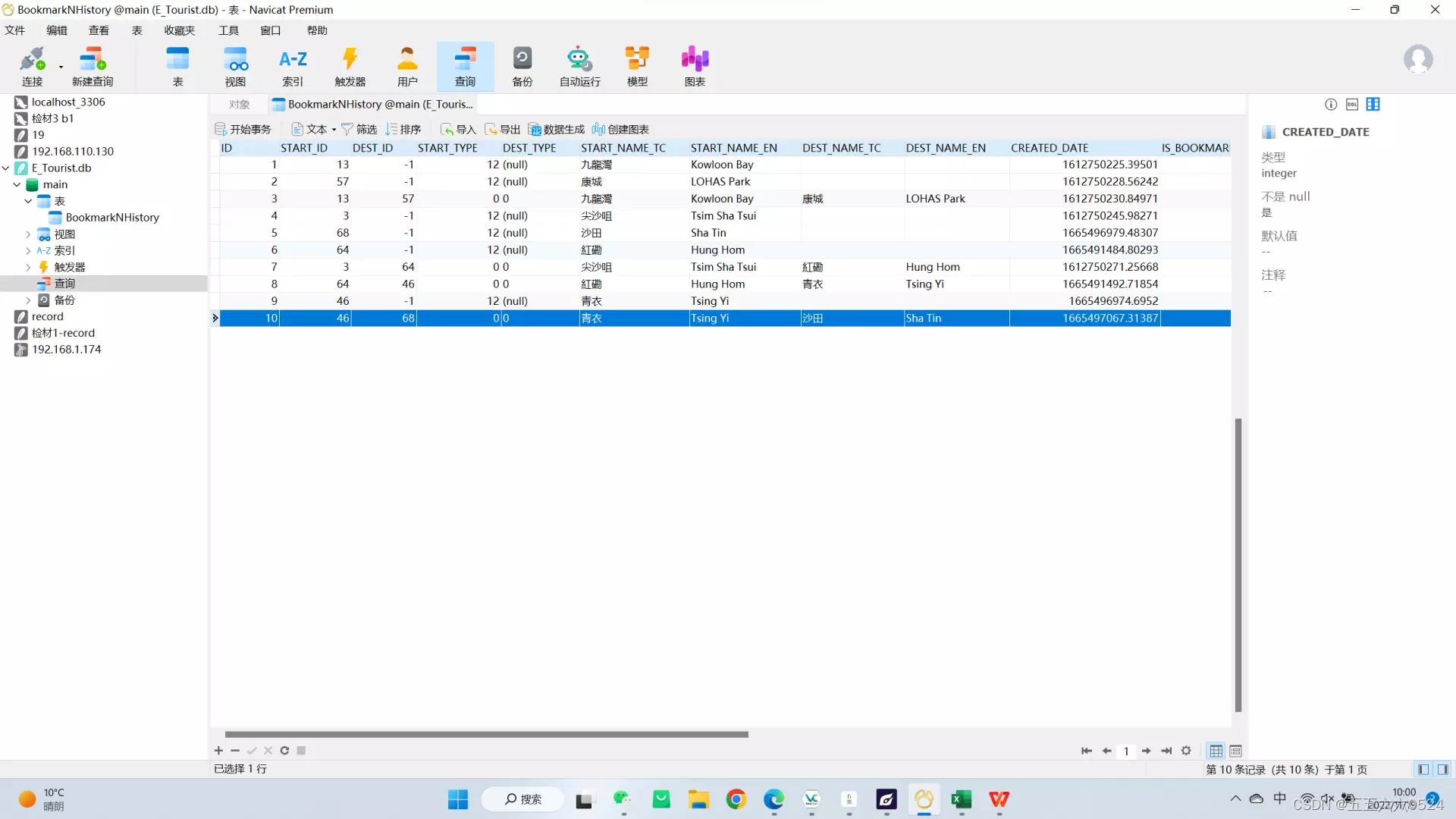2、[多选题] 王晓琳的手机里有一个 'MTR Mobile '(港铁)的手机程序(Mobile App)。 检视其数据库(Database) 的数据,王晓琳于2022年10月11日 22:04 时将一行程加入书签(Bookmark),这段行程的起点及终点站包括?(2分)