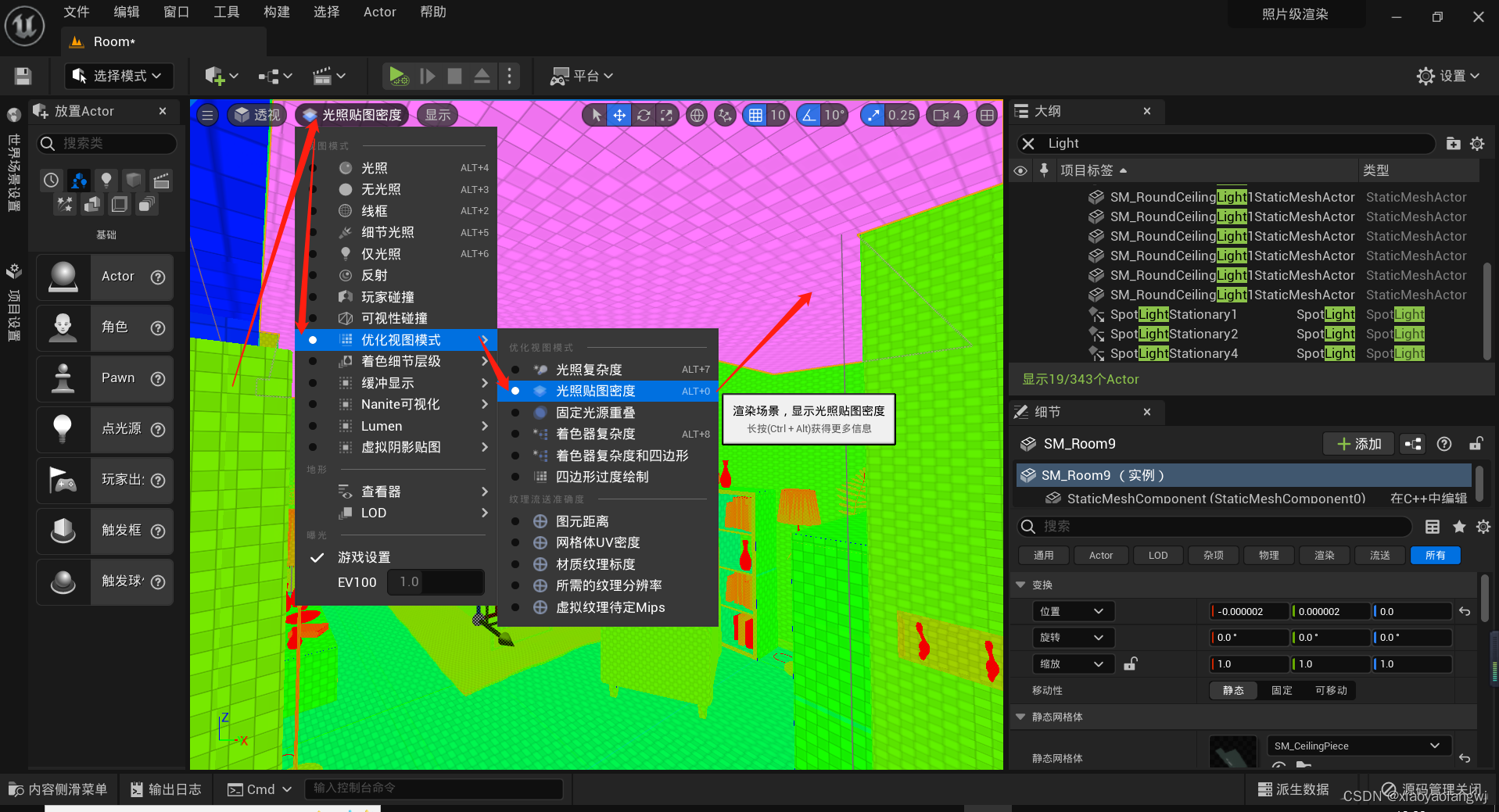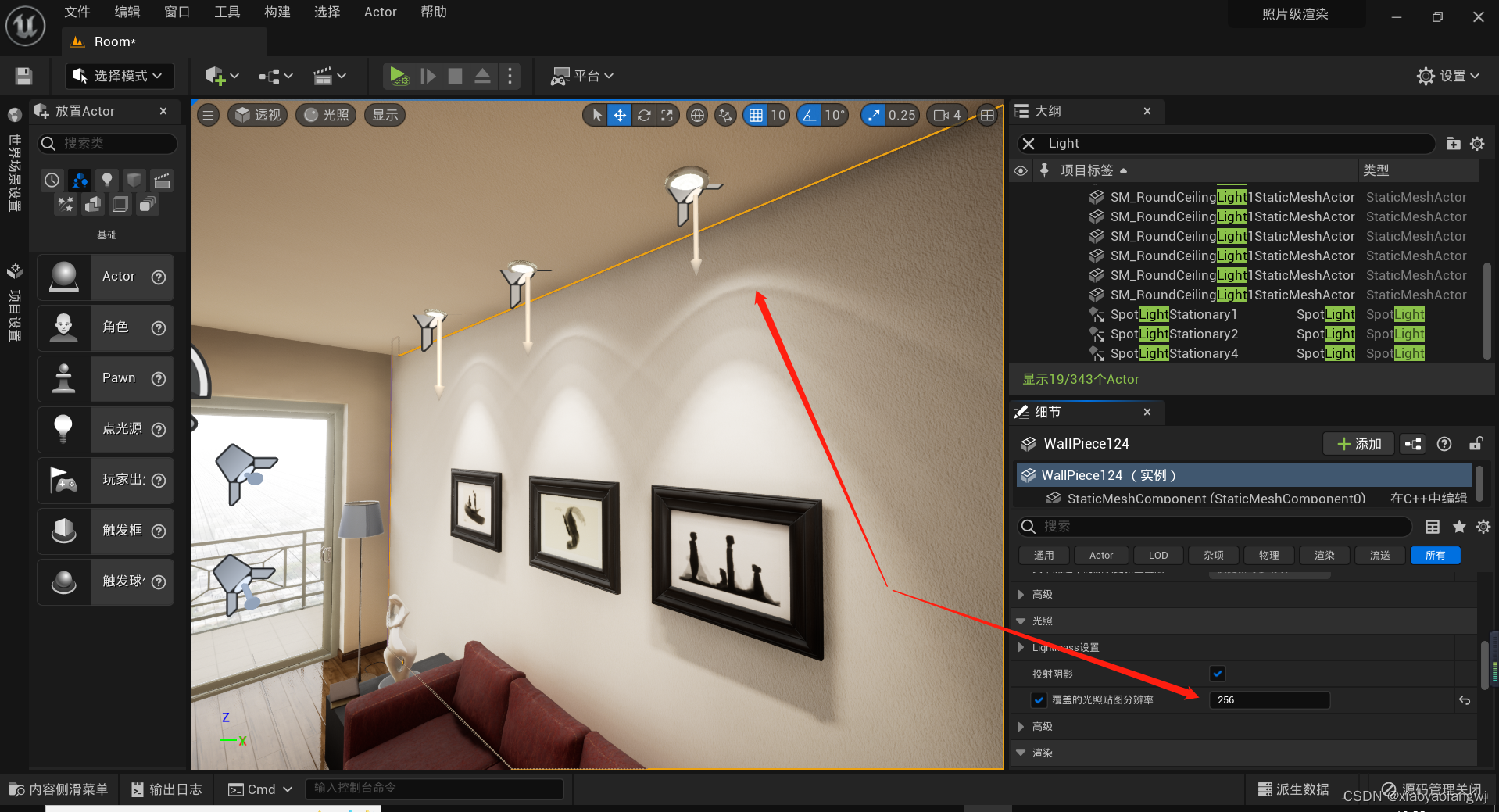 UE5笔记【五】操作细节——光源、光线参数配置、光照图修复