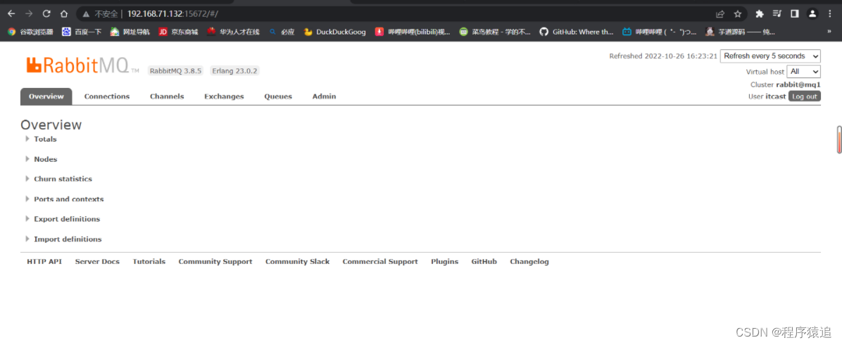 docker run \-e RABBITMQ_DEFAULT_USER=itcast \-e RABBITMQ_DEFAULT_PASS=123321 \--name mq \--hostname mq1 \-p 15672:15672 \-p 5672:5672 \-d \rabbitmq:3-management