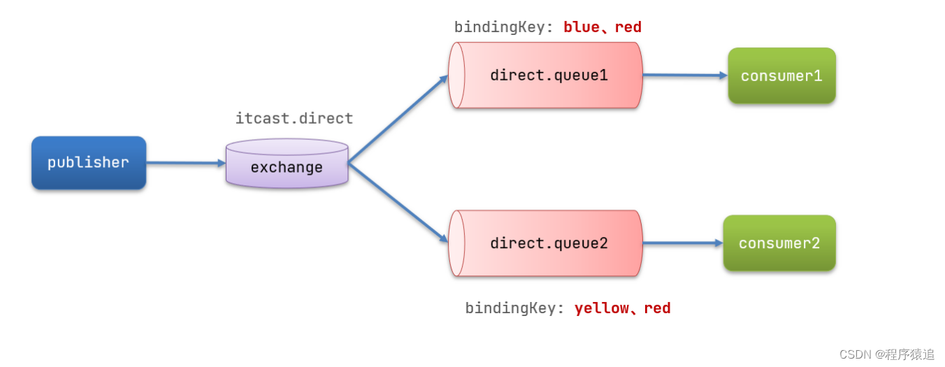 @RabbitListener(bindings = @QueueBinding(value = @Queue(name = "direct.queue1"),exchange = @Exchange(name = "itcast.direct", type = ExchangeTypes.DIRECT),key = {"red", "blue"}